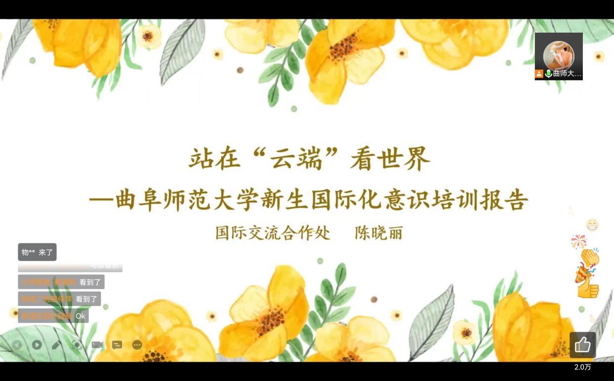 利用腾讯会议对2022级新生在线上进行国际化意识教育,金沙娱乐