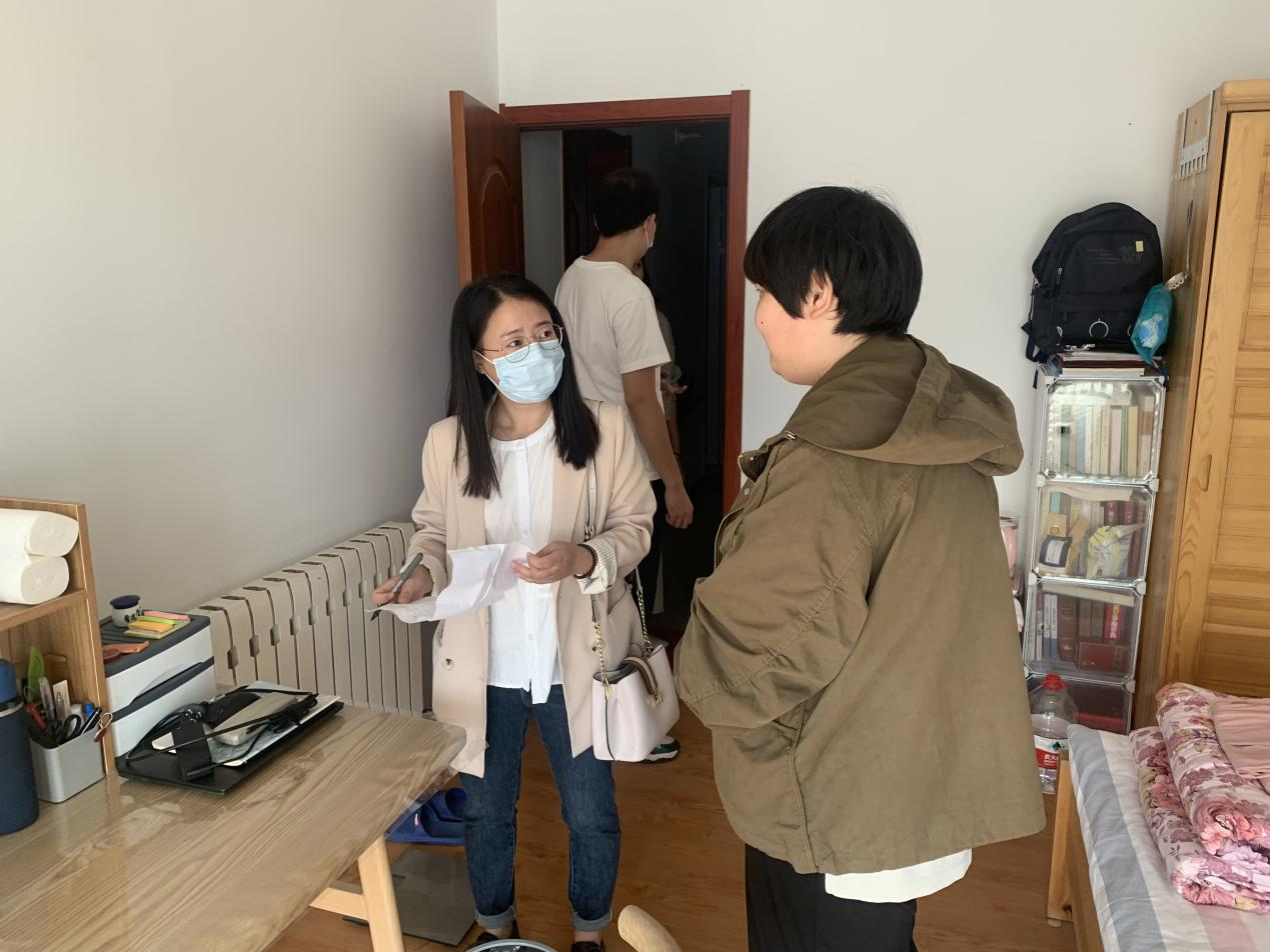 研究生辅导员徐莉带领研究生会主席仇利鑫、副主席冯怡博,纪检劳卫部部长王玥涵一同走访金沙娱乐