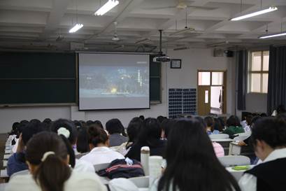 王元如讲到,辉煌业绩是实干创造出来的,是无数革命先烈用鲜血和生命换来的,并通过一个短片展示为国捐躯的革命先烈。让学生在视频中感受先烈为新中国甘愿抛头颅、洒热血的英勇气概,在潜移默化中感悟英雄精神。