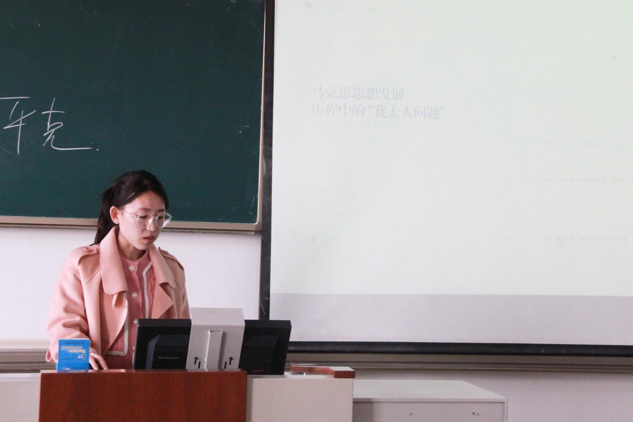 2021级马慧敏同学通过《马克思思想发展历程中的“犹太人问题”》一书的分享,详细阐释了卡尔·马克思与布鲁诺·鲍威尔的三次交锋,分析了马克思超越鲍威尔之处即现代社会对犹太人的重新塑造,犹太人的解放不是宗教问题,而是政治问题。