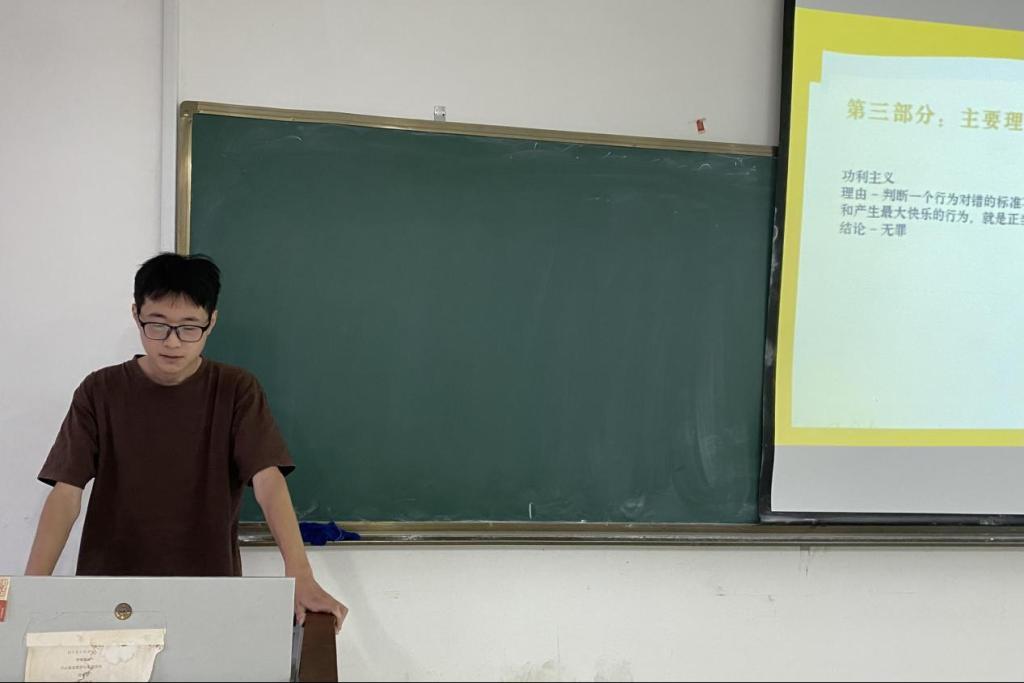 2023级卞邵峰同学分享了托马斯·卡斯卡特的《电车难题:该不该把胖子推下桥》,他从作者简介、主要内容、主要理论与阅读心得四部分依次对“电车难题”情境事件、随之而来的审判以及古往今来若干哲学家关于这个问题的主要思想与贡献进行了系统阐释。该书启发我们要不断地向世界的不可知和种种道德困境发起挑战,才能更加接近更为美好与正义的生活。