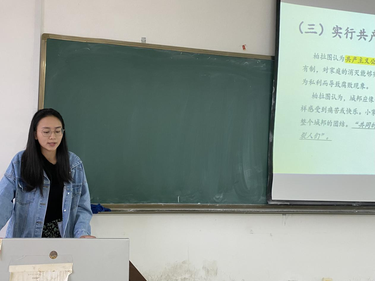 2022级孙彩惠同学探析了《理想国》中城邦卫士的正义,柏拉图认为正义是“城邦中的每一个人必须只从事一项最合乎他本性的工作”,接着大家就“非正义者比正义者获利更多吗?”、“统治者的谎言是否正当?”展开了问题探讨。