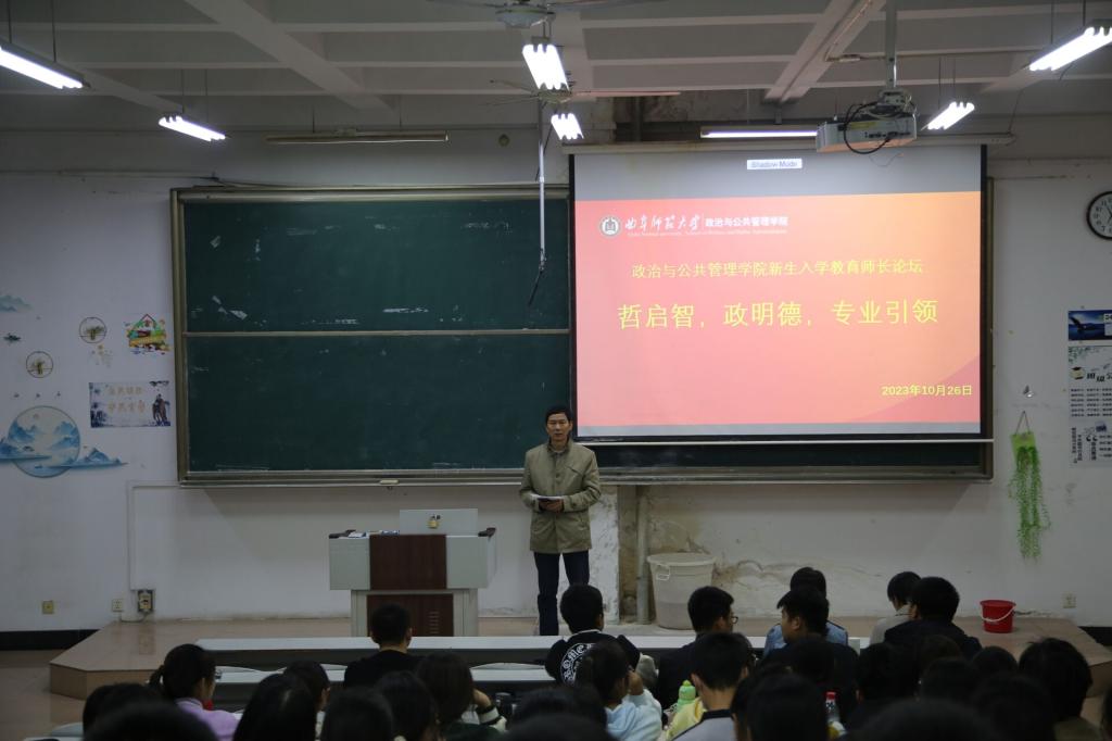 辅导员王元如主持,政治学与行政学专业秦绪娜、程香丽老师出席,2023级新生积极参与。