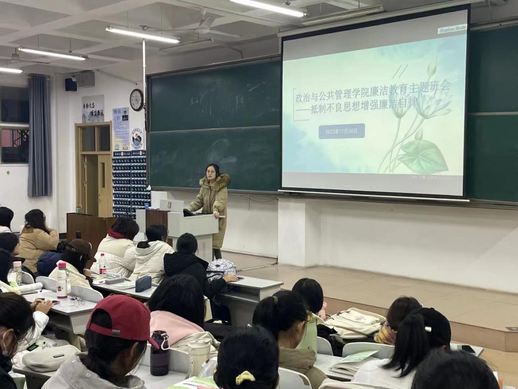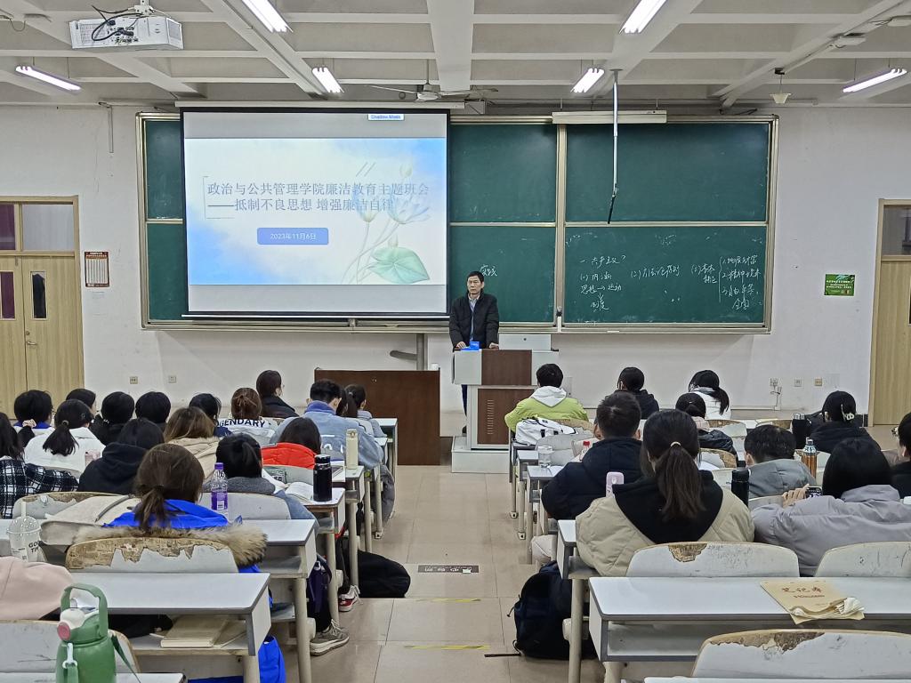 各年级相继围绕“抵制不良思想,增强廉洁自律”主题开展班会。本次廉洁教育班会由各年级辅导员分别主持,全体同学积极参与。