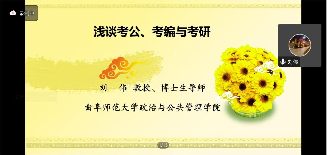 于12月20日成功举行“浅谈考公、考编与考研”线上讲座。本次会议由教授、博士生导师刘伟主讲,政治与金沙娱乐