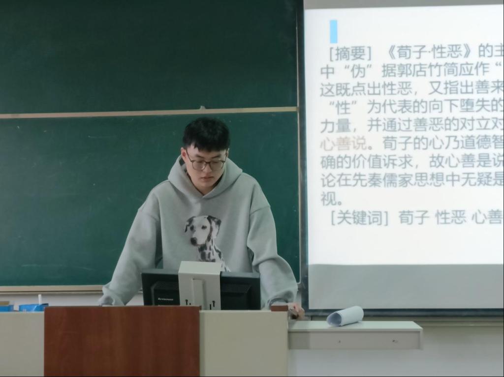 2022级夏乐文同学结合论文《荀子人性论辩证—论荀子性恶、心善说》,论述了荀子的心乃道德智虑心,心好善、知善、为善,具有明确的价值诉求,故心善是说心趋向于善、可以为善。