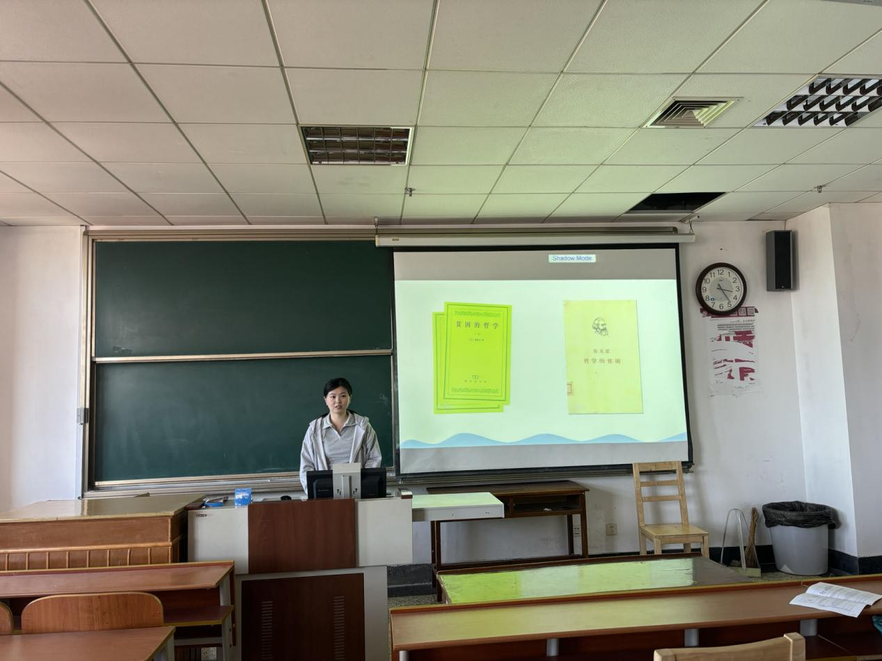 2023级岳丽丽同学从批判的角度分享了《哲学的贫困》一书,这本书以全新的历史唯物主义为理论武器,从经济学和哲学两个方面批判了蒲鲁东唯心主义经济学,揭露了其对资本主义批判的非科学性和小资产阶级的反革命性。她结合”马克思认为蒲鲁东将哲学与国民经济学相结合的尝试是不成功的”这一问题,分享了自己的观点。