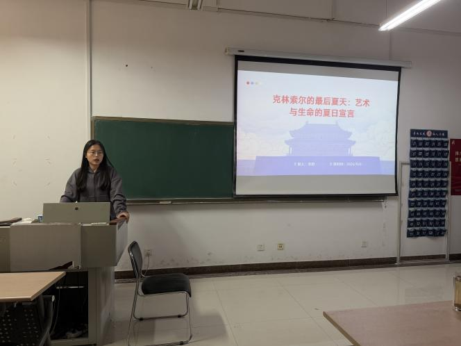 25级李超同学分享的书目是《克林索尔的最后夏天》,她认为作者通过各种形式转述着中国古代的哲学思想,以独有的方式表达着欧洲没落的思想,透露出战争时代人们对于救赎与重生的普遍渴望。