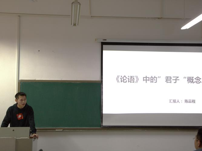 25级陈嘉程同学分享的书目是《论语》,他探讨了《论语》中的“君子”概念,认为关于“君子”一词的内涵,是深刻而又丰富的,应当引入时空之维从联系的角度来分析。同时,他提出可以从多角度分析君子的概念内涵,引发了同学们的深入思考。