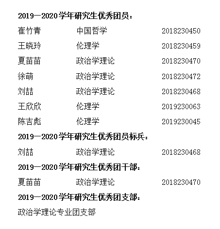 政治与金沙娱乐 严格按照《金沙娱乐 研究生共青团评优办法》的规定和要求,按照“公平、公开、公正、公示”的原则,金沙娱乐 组成研究生共青团评优工作小组进行评审,现将2019—2020学年研究生共青团评优初选人员名单予以公示: