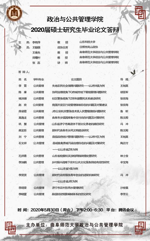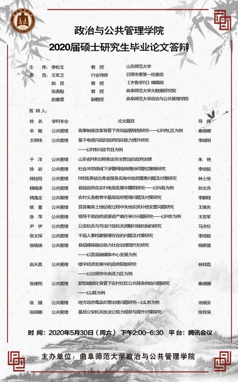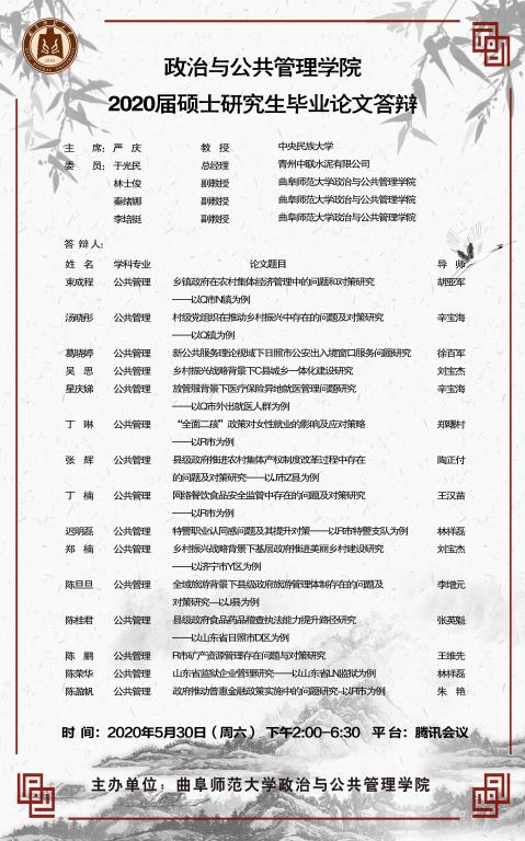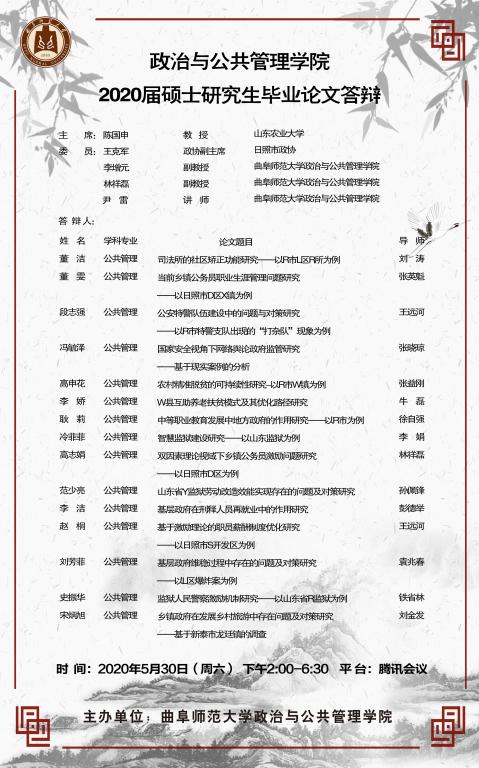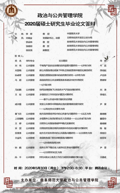 政治与金沙娱乐 2020届专业型硕士研究生学位论文答辩公告
