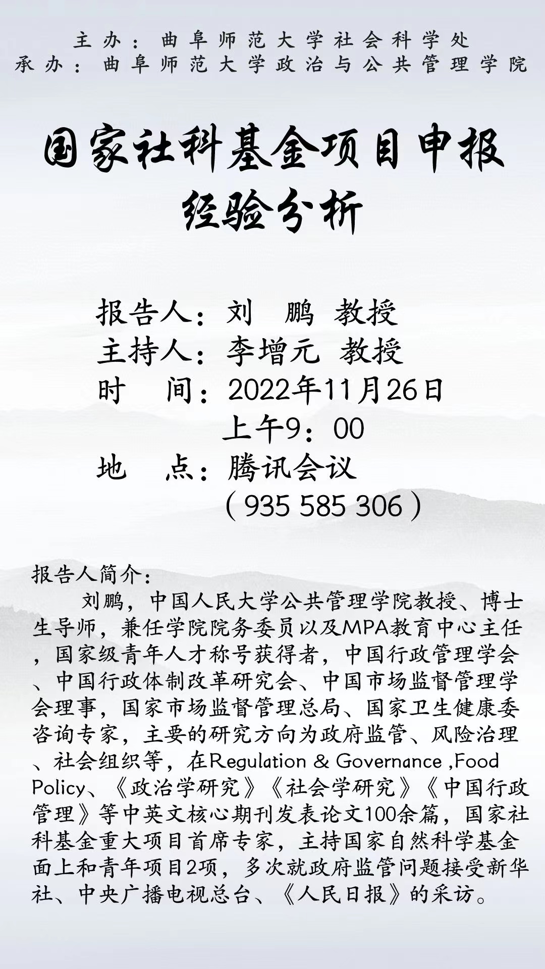 讲座题目:《国家社科基金项目申报经验分析》