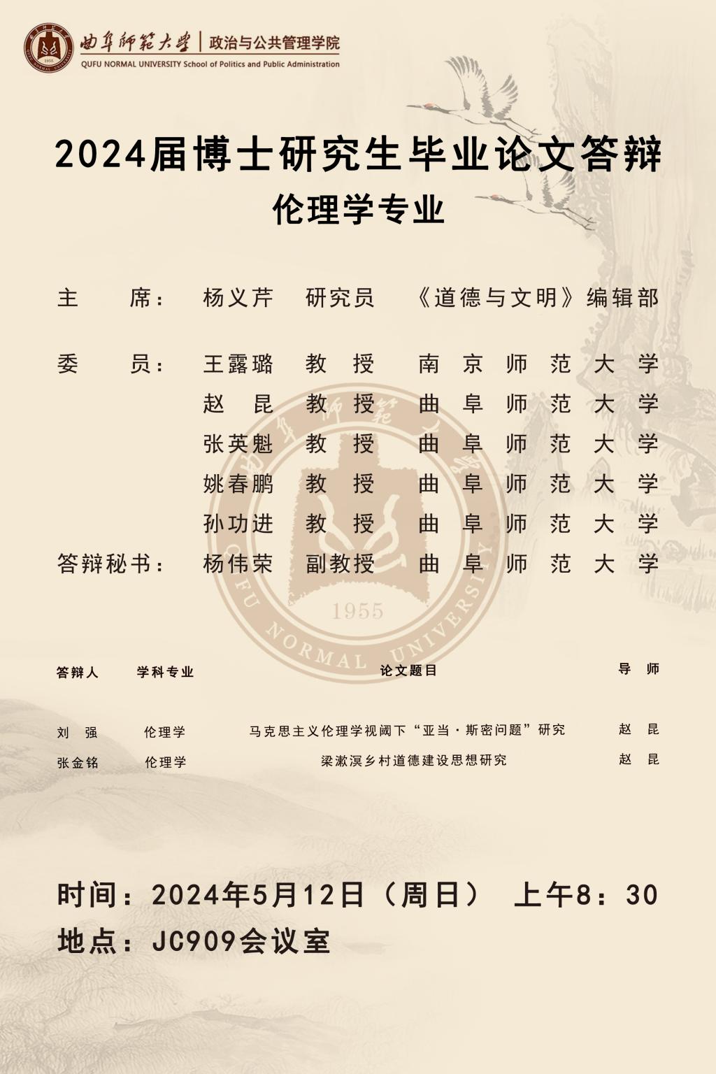 政治与金沙娱乐 2024届博士研究生学位论文答辩公告
