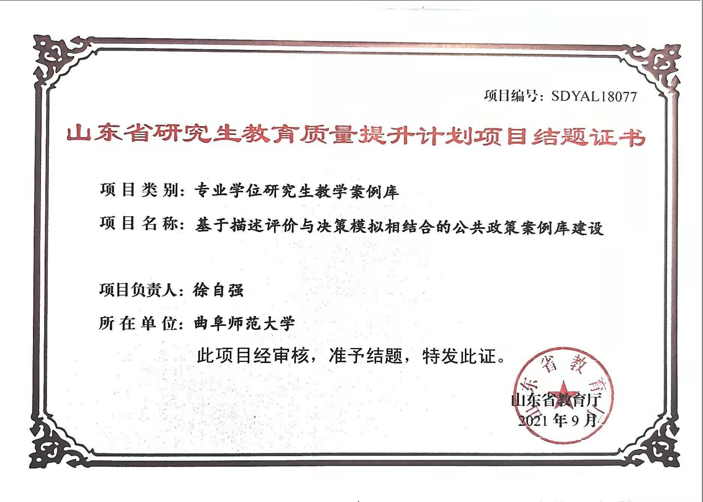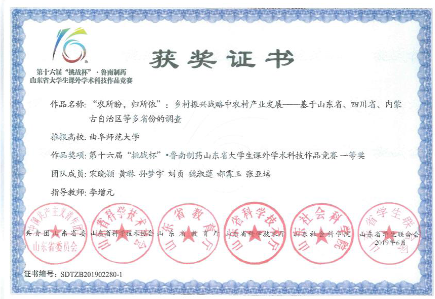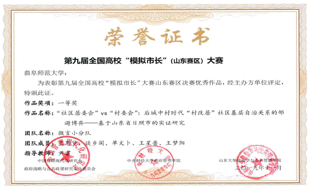 近3年来,获批省部级以上科研项目30多项,其中国家级项目8项;发表学术论文170余篇;被国家领导人采纳批示咨询报告3次、被省部级主要领导人采纳批示咨询报告近10次;出版学术著作12部。获得省社科优秀成果二等奖2项、三等奖1项。全国高校“模拟市长”全国总决赛一等奖、全国第三名,第十五届“挑战杯”全国三等奖、山东特等奖等奖项。