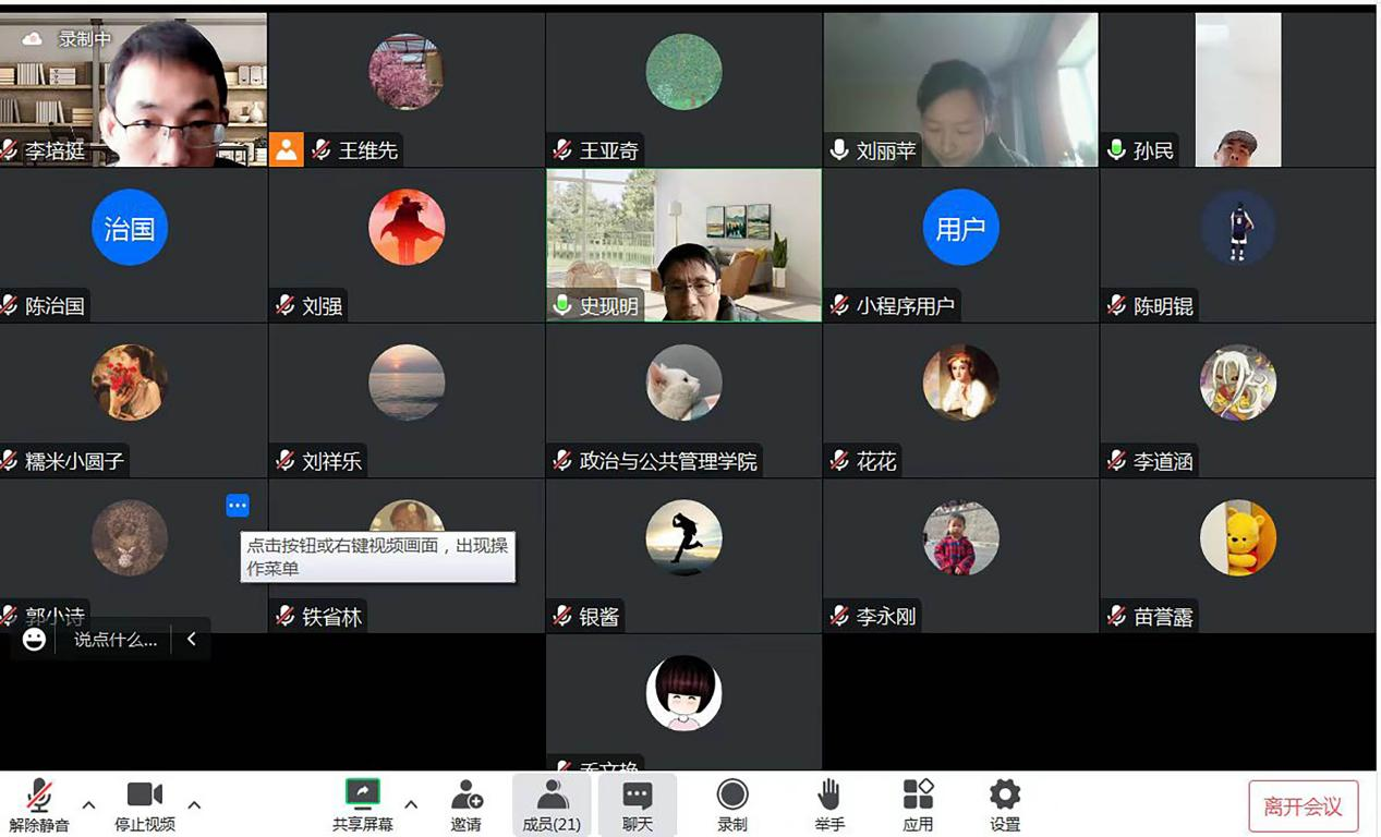 张英魁教授针对组内老师们的选题立意、研究对象、研究内容、研究方法、研究述评、文章框架等方面给予中肯的建议和意见。张教授分享了申请书写作的注意事项、文献综述的撰写要求与核心问题的论证细节,认为要加强项目选题与核心观点的相关性,结合实际情况撰写申报书。尹世久教授对各位老师的申报书与选题进行了指导,他强调了项目论证的问题意识、论证框架的逻辑性、研究内容的深入性与立项选题的可行性,建议要提高行文学术性,认真优化、反复打磨申报文本。