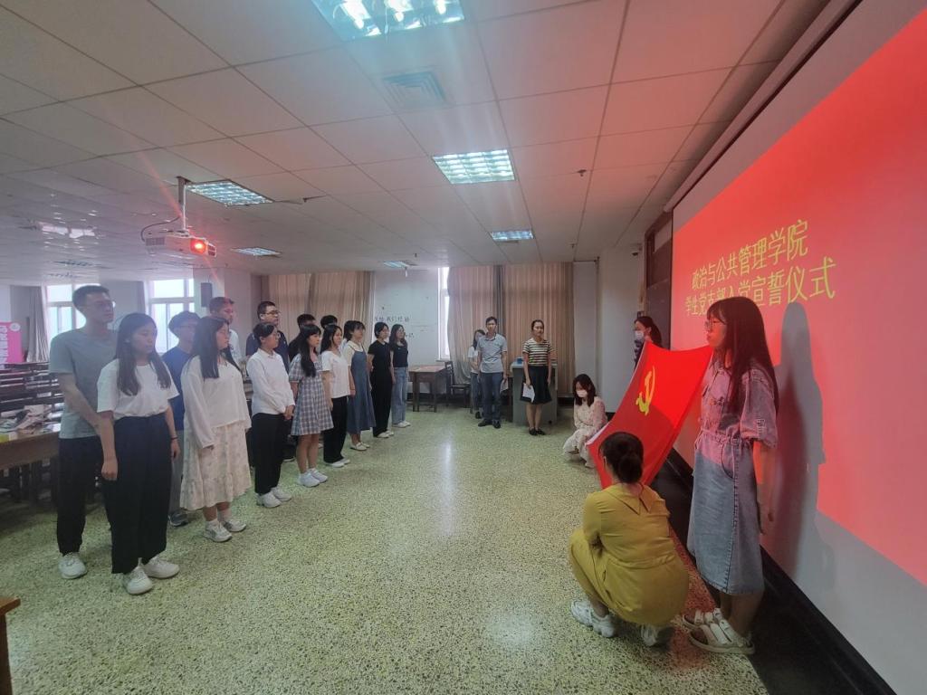 学生党支部举行预备党员入党宣誓仪式。