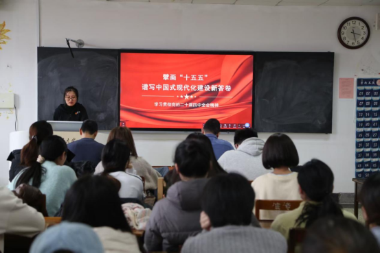 耿晓敏书记在党课中以“擘画“十五五”,谱写中国式现代化建设新答卷”为主题,她向大家阐述了“十五五”时期的重要意义,这一时期是国家基本实现社会主义现代化的关键阶段,起着承上启下的重要作用。她结合当前国际国内形势,分析了未来发展的重点任务,强调要通过解决瓶颈问题、补齐短板,在激烈的竞争中掌握主动权,为国家的现代化建设打下更坚实的基础。最后,耿晓敏书记鼓励同志们不仅要在课堂上认真听讲,课后也要主动研读相关文件,深刻理解国家的发展规划。