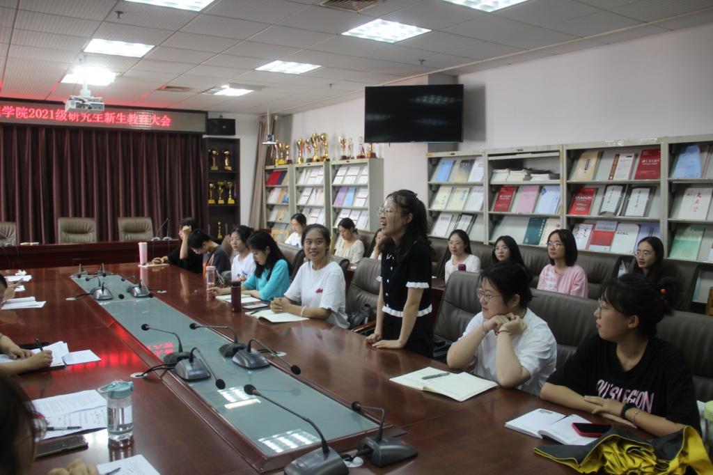 在JC909召开2021级研究生入学教育大会,我院党委书记卢瑞霞、副院长李增元、研究生辅导员徐莉出席本次会议,2021级学术型硕士研究生参加会议,会议由徐莉主持。