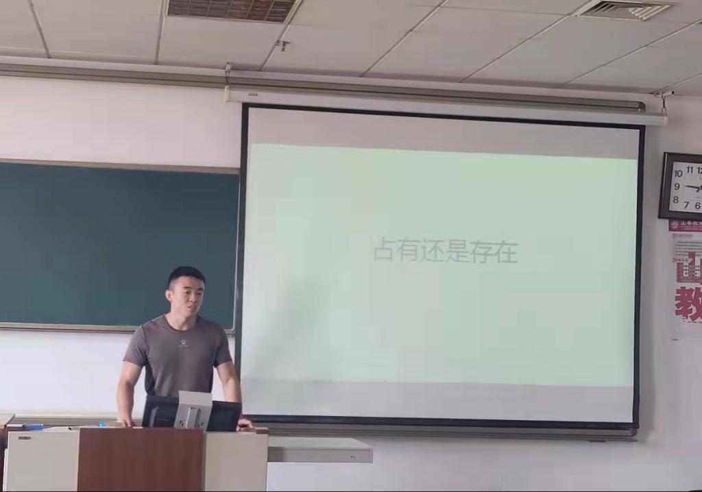 首先,2019级周铁岩同学为大家分享了著名人本主义哲学家弗洛姆的著作《占有还是存在》。他讲到,占有和存在是弗洛姆区分出的两种不同形式的生存方式,重“占有”的生存方式的基础是以利润为取向的社会,重“存在”的生存方式则会创造性地运用人的力量。本书中弗洛姆对消费社会的反人道、对人的潜意识的操纵,以及为稳定社会经济制度而进行的蓄意消费刺激,都进行了尖锐的批判。