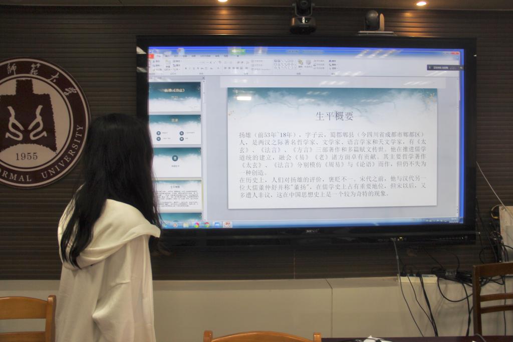 首先,2020级李悦宁同学为大家分享了扬雄的《法言》。她讲道,扬雄人性论所关注的,是作为社会个体的个人何以可能成为一个道德完美的君子,进而向圣人的目标挺进。扬雄承认人后天转化的可能,使圣人成为可以达到的目标,这就把为善成圣的希望给予更多的人。
