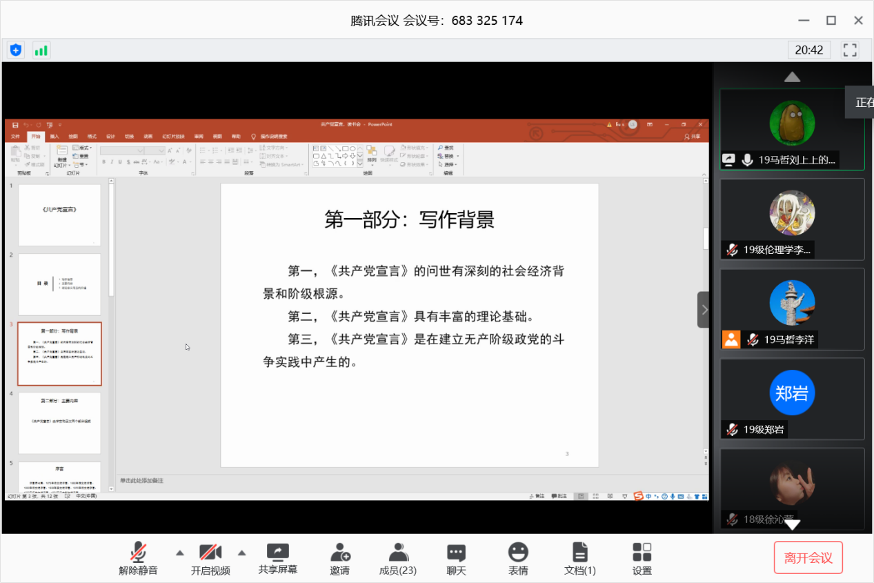 政研论坛第十五期马克思主义哲学专业研究生读书交流会在腾讯会议上举行,金沙娱乐