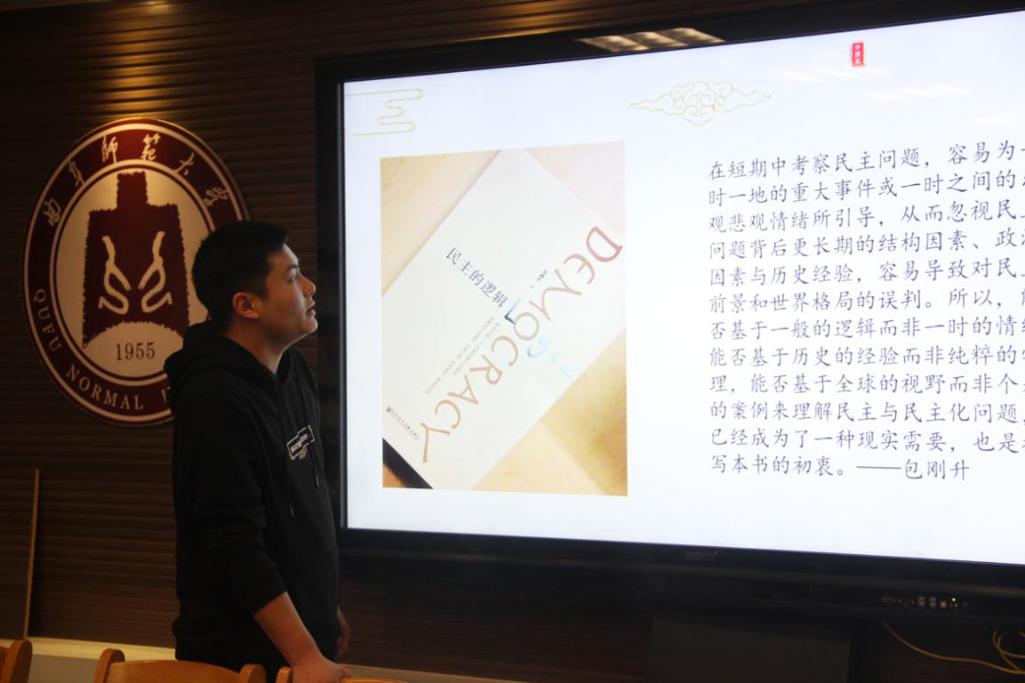 刘绍卿同学分享了《民主的逻辑》一书,他分别讲述民主发展的历史、民主化转型过程、民主化面临的挑战以及阅读心得。刘绍卿认为这本书是一本关于民主理论的入门科普性书籍,通俗易懂,具有较高的可读性。整本书的逻辑框架非常清晰,介绍了民主的起源、民主的内涵,分析了高民主国家、民主转型中国家、威权政体国家发展的现状、优势和问题。书中有许多政治学著作和名家观点的引述,但其中大部分内容只是作者对目前学术界观点的总结概括,而自己的观点相对比较少,只能帮助我们理清对民主的认识,从而全面地理性地看待“民主”这一致体。从作者其他专著和论文的观点来看,包刚升教授比较认同西方民主模式,认为民主是人类能想到的最不坏的一种统治模式。