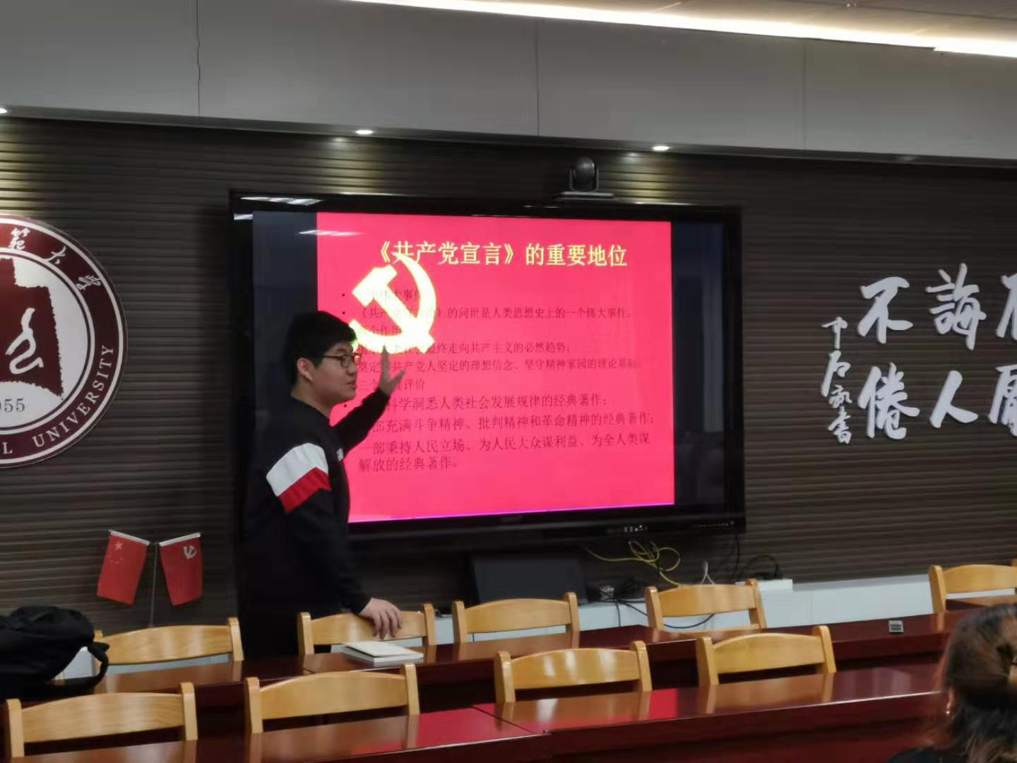 首先,孙泽玮同学对《共产党宣言》进行了介绍,他着重介绍了《共产党宣言》的写作背景、全文架构、重要地位的评价、基本理论几个方面。在基本理论部分他重点讲述了唯物史观理论、阶级斗争理论、资产阶级和资本主义的历史地位以及关于无产阶级的革命和无产阶级专政四个部分。尽管《共产党宣言》距离发表之初已有一百六十一年的历史,但《共产党宣言》闪耀的思想光芒仍然是照耀人类社会前进的璀璨明灯。这部有着深刻历史意义的宣言,不仅对当时资本主义社会中的阶级对立和斗争进行了深刻的分析,而且为无产阶级的斗争指明了方向。