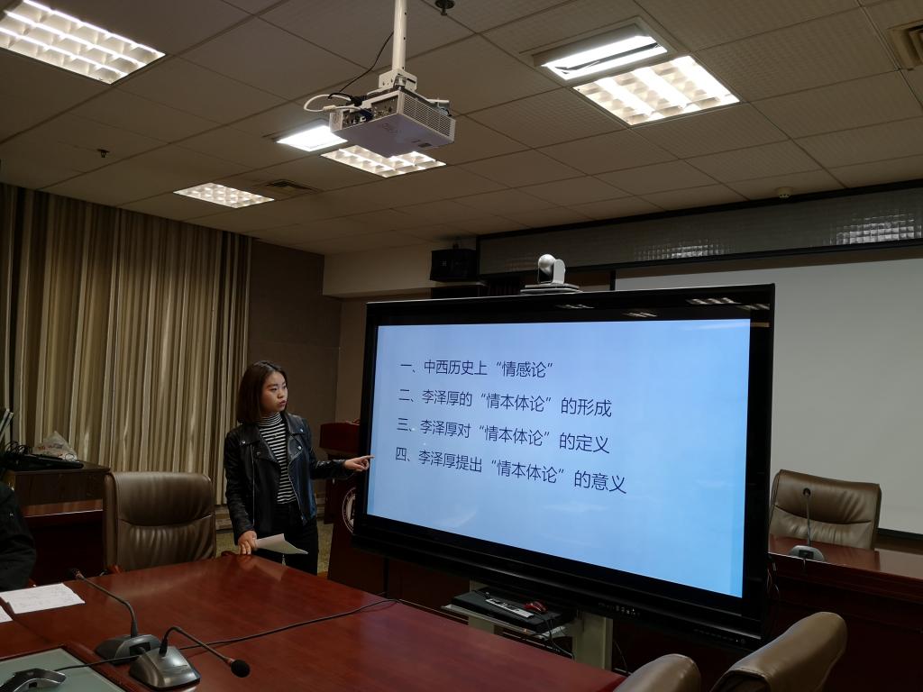 本期政研论坛读书会围绕哲学专业相关书目及人物展开讨论。首先中国哲学专业的杨洋同学探讨了冯友兰先生对中西问题方向态度,以及冯友兰先生喻以乡下人和城里人提出空间文化论,指出中国文化复兴的希望;马克思主义哲学专业王俊博同学针对冯友兰先生提出的“中学为体,西学为用”与洋务派“中学为体,西学为用”的异同点与杨洋同学展开讨论。随后马克思主义哲学专业李浩正同学以“哲学主要问题”为主题展开阐述,并从“在、真、善、美、人”五个方面去探讨哲学是什么。伦理学专业赵蕊同学阐述了李泽厚的“情本体”,探讨内容主要是中西方的情感体,解析了李泽厚的情本体的定义、形式和理论意义及现实意义。在报告会问题讨论环节,各级研究生针对中西方“本体论”的异同,展开了激烈的讨论,气氛热烈,学术氛围浓厚。