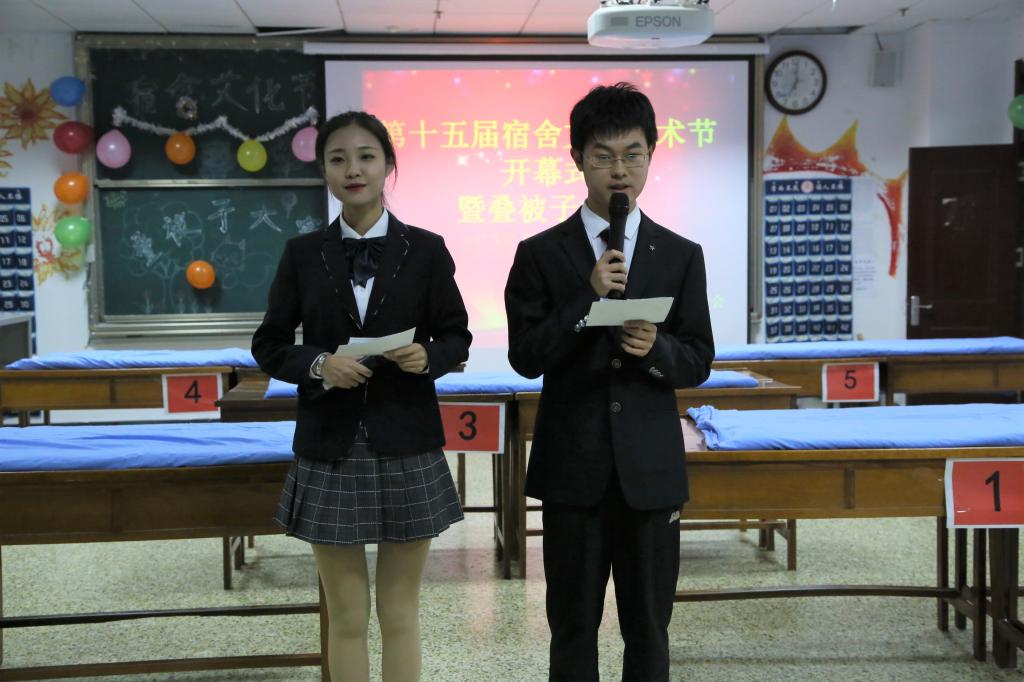 学生会主席李增珣发表简短讲话。闫力认为此次活动的举办能够锻炼同学们整理内务的基本能力,并希望大家赛出水平、赛出风格;李增珣谈从小事做起的重要性,并对活动的顺利开展表示祝贺。比赛伊始,师哥师姐为同学们带来叠被子标准示范,两位主席也参与其中,充分发挥模范带头作用,为上场选手作出表率。正式比赛参赛选手50人共分为十组,每组随机搭配五人上场,限时5分钟。伴随着欢快轻松的背景音乐,同学们迅速开始整理被子,熟练地运用各种技巧手法,对压实理平、卡出条印、修边捏线等方面进行细致处理,在规定的时间内,原本摊平的被子变成横平竖直、整洁美观的“豆腐块”呈现在同学们眼前,被子外观棱角分明,折缝清晰,没有褶皱凹陷,精彩的叠被子过程赢得观众热烈的掌声。此外,比赛期间穿插的“齐心协力”、“你比我猜”、“反常态”等游戏环节,充分活跃现场气氛,同学们幽默风趣、生动活泼的互动一次次将比赛推向高潮。