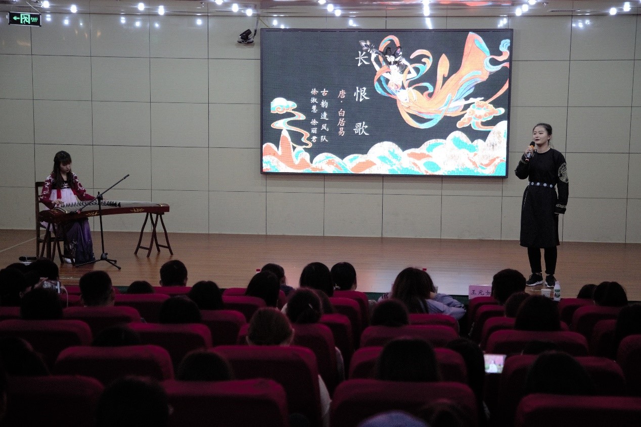 团委学生会文艺部、边缘文学社和大学生就业创业协会共同举办。比赛在古风古韵的舞蹈《山鬼》中拉开帷幕。经过初赛和复赛的角逐,共有8支队伍入围决赛。本次比赛共分三个环节,第一环节十六位选手两两组队,在抽签进行分组答题后,共有四支队伍脱颖而出;第二环节四支队伍分别采用自己擅长的方式对喜爱的诗词进行解读,选手们各施才艺,运用情景演绎、歌舞表演等方式展现诗词内容,形式新奇,趣味十足,激发起观众对诗词的热爱,引得观众席掌声阵阵。