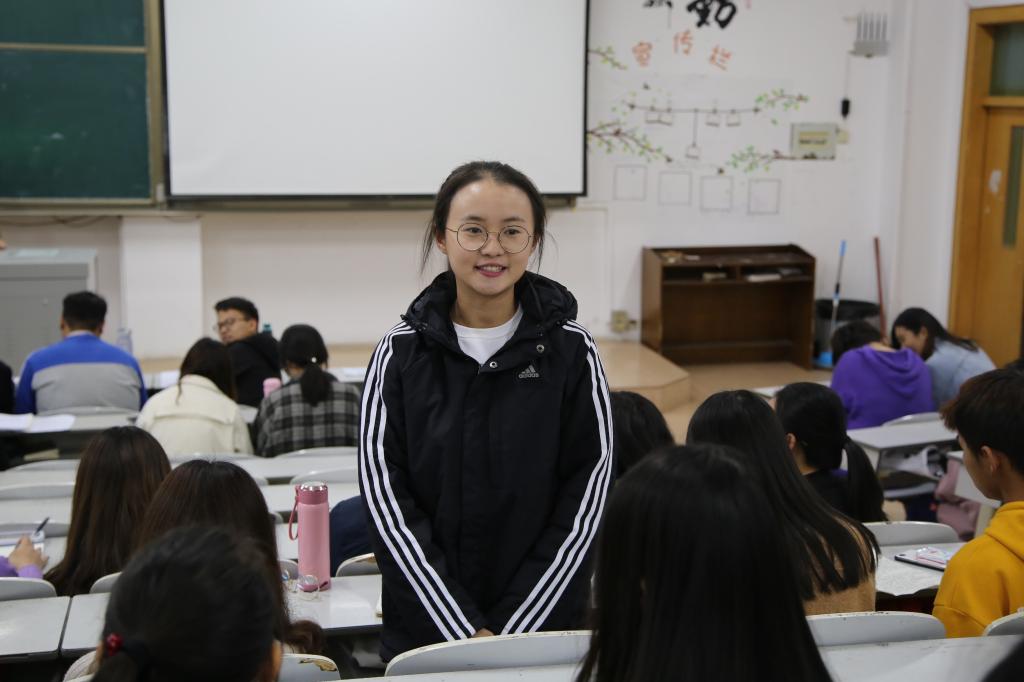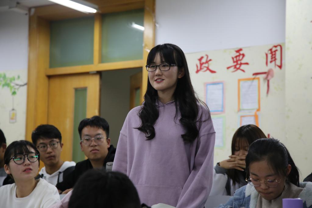 团委副书记刘佳璇向同学们展示政治与金沙娱乐