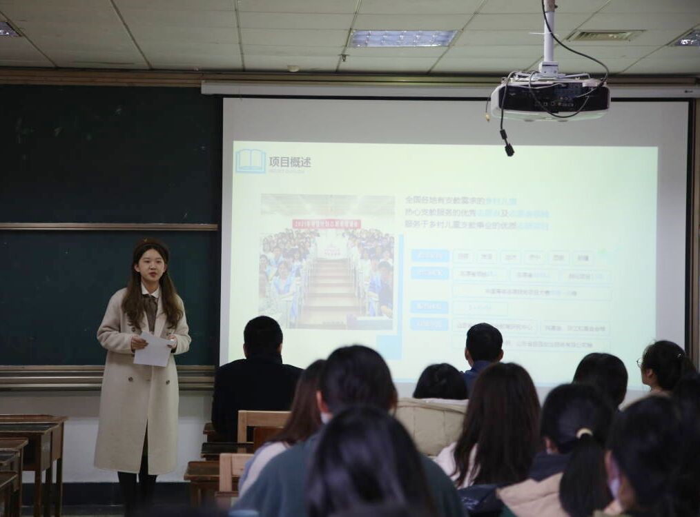 首先,由创业计划竞赛国银奖获得者李东格就其获奖项目“憨兜成才”和省金奖获得者亓欣然就其竞赛项目“寻苔计划”进行展示,并对“挑战杯”的具体文本写作、团队建设等方面作出介绍指导,鼓励同学们积极主动参与比赛,主动开拓视野,为社会发展做出贡献。