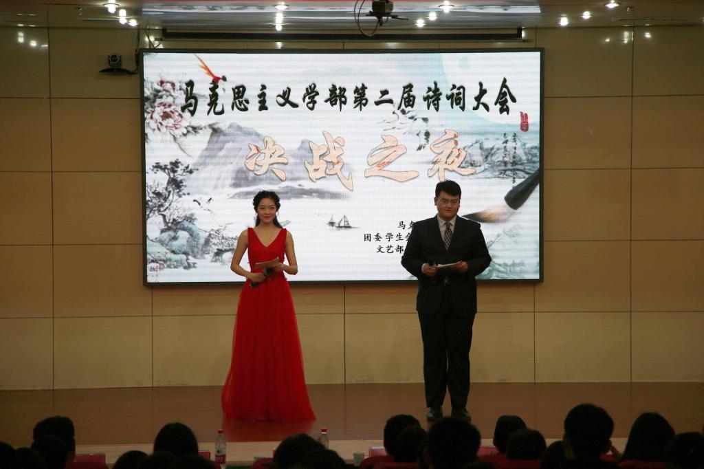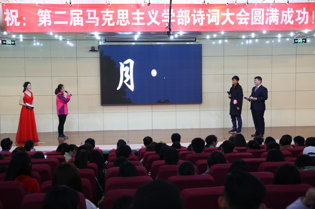 4月1日,马克思主义学部第二届诗词大会于图书馆报告厅举行,此次比赛由团委学生会社团联合会文艺部联合边缘文学社共同举办,学部党委副书记宋钧文,政治与金沙娱乐