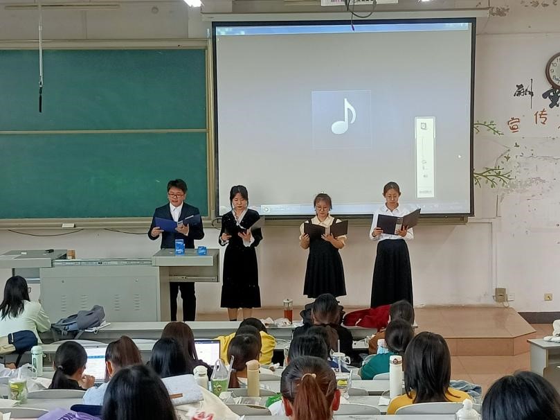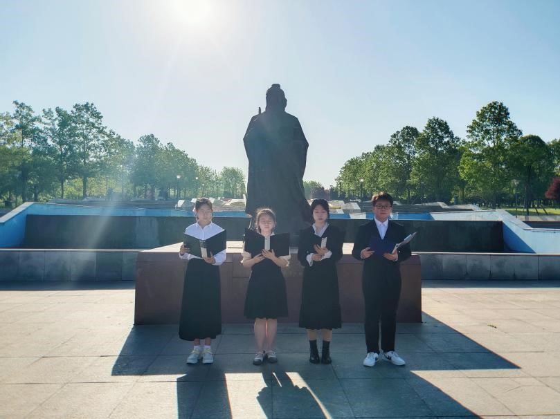 青年凌壮志,激情赤子心。5月4日上午,弘道宣讲团于A302开展“承五四精神,洒青春激情”五四宣讲活动,活动由PPT宣讲、视频演示和诗歌朗诵三部分组成。活动伊始,弘道宣讲团社员带领学生重温五四精神,娓娓道来百年前时代篇章,同学们认真学习,感受峥嵘岁月中的精神力量。“恰同学少年,风华正茂”,《“五四”的火炬》诗歌朗诵在同学们掌声中拉开序幕,将活动推向高潮。社员们慷慨激昂、意气风发,用声音歌颂祖国,献礼五四青年节。同学们纷纷表示在朗诵中感受到百年间的壮阔历程、表示继续传承时代薪火。随后,弘道宣讲团到达孔子圣像前诵读,播撒五四精神之籽。