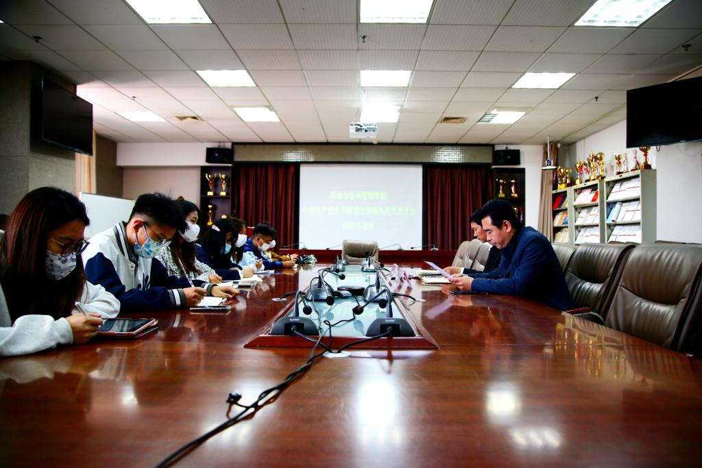 团委、学生会、各年级团支书和班长于JC909集体学习,会议由金沙娱乐