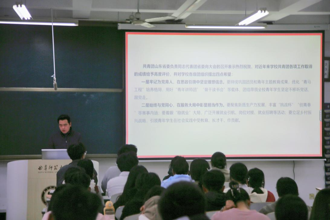 “十四五”事业发展规划,加快高水平孔子家乡大学建设的关键时期召开的一次青春盛会。全院青年要认真学习团代会提出的使命和任务,不断提高自身素质和能力,积极投身科技创新、社会实践和志愿服务活动,为建设世界知名的高水平孔子家