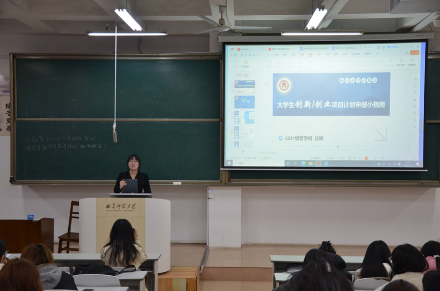 于JA305开展大创立项经验分享会。21级哲学班长、国家级大创项目负责人庄妍做分享,为金沙娱乐