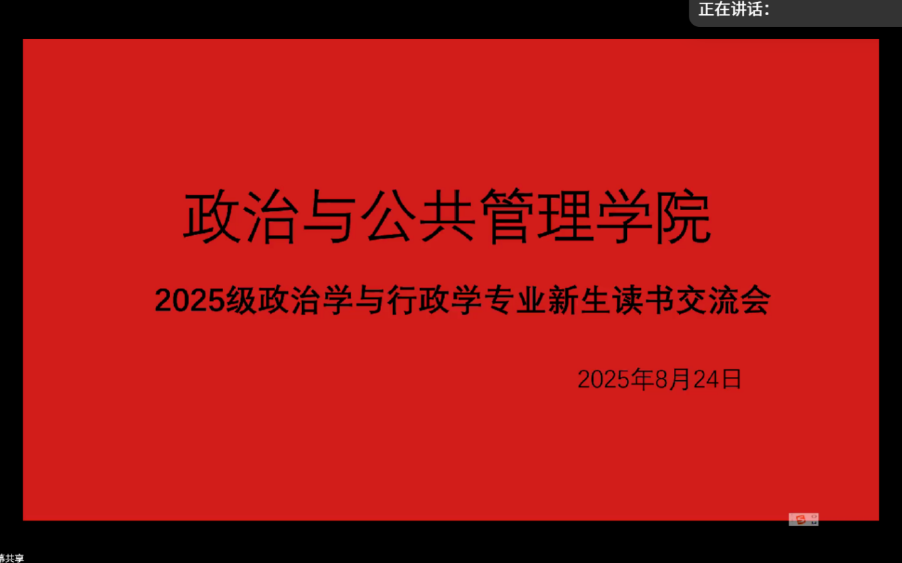 本次交流会分别邀请宋健老师和程香丽老师,以及2023级哲学班李一嘉、2023级政治学与行政学二班张继政、2024级哲学二班秦正垚、2024级政治学与行政学一班江百舸四位优秀师哥师姐向2025级新生分享读书心得以及学习经验。