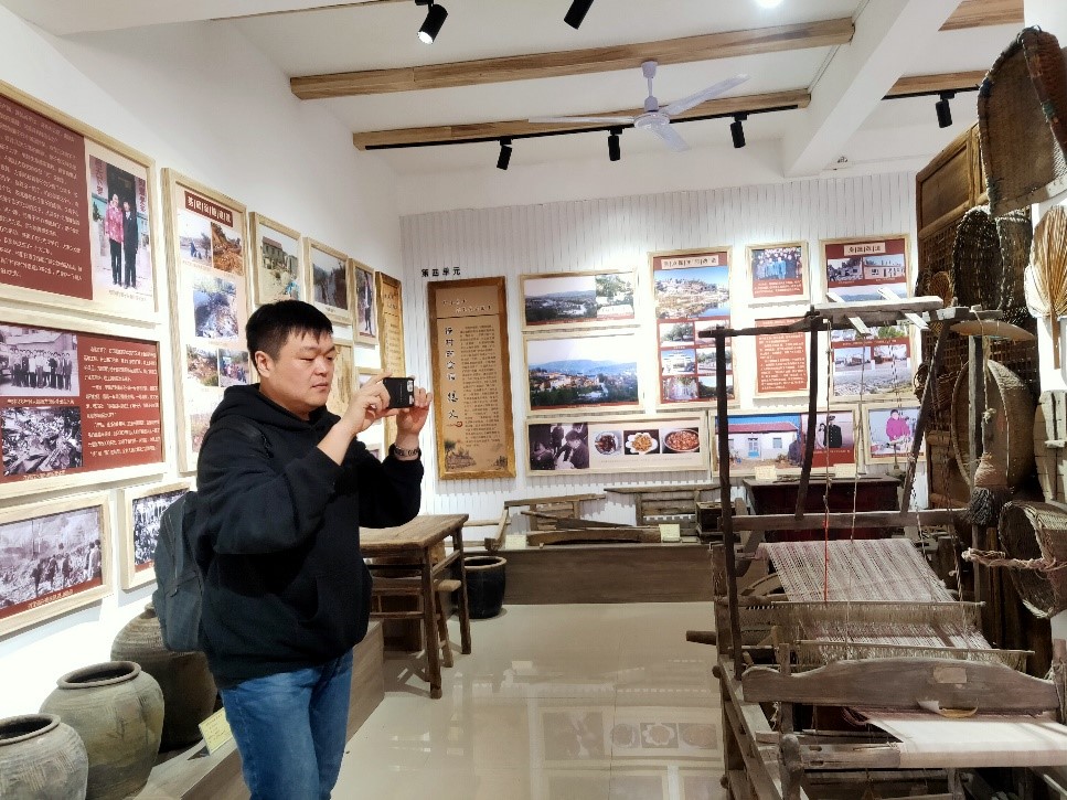 百泉峪村村党支部书记、村委会主任方国明应邀为同学们介绍村庄发展历史。首先,方明国书记结合亲身经历和工作历程,分享了村庄发展演变的过程。尹雷老师在方书记的带领下,通过第一视角将所见所闻传递给学生,边听边走边讲解,实时解答同学们的疑问,引导学生自主思考。