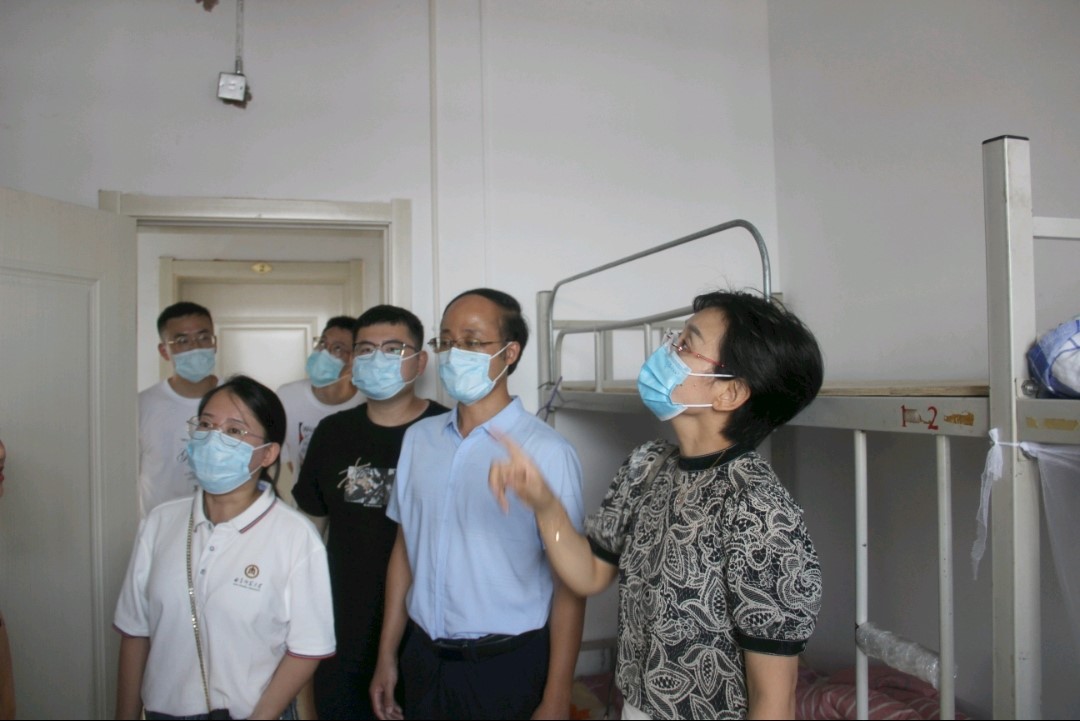 党委书记卢瑞霞、副院长李增元、副书记张忠凯、团委书记王元如、2021级辅导员马腾、研究生辅导员徐莉等领导老师一起到宿舍看望慰问2021级新同学。