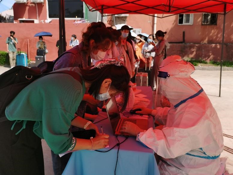 于文泽园迎接省外学生错峰返校。金沙娱乐