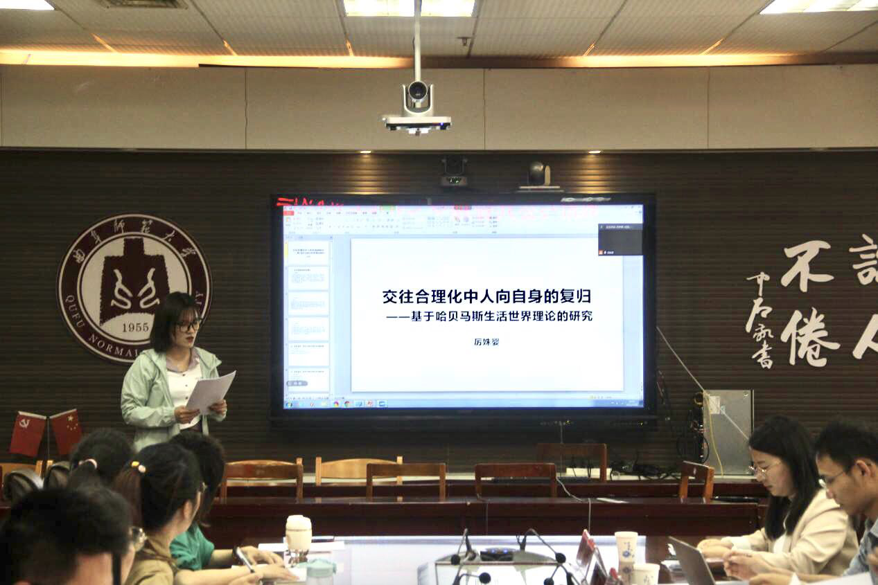 本次论坛共有13名学生参赛,参赛论文涵盖马克思主义哲学、中国哲学、伦理学、外国哲学不同方向的学术问题。本次论坛分为论文陈述、评委提问与点评和评委商议打分三个环节。各参赛学生均以PPT形式对自己的论文主题、研究内容及研究结论进行精要陈述。随后,评委老师对参赛学生在论文撰写方面取得的进步与成绩予以肯定,并从论文选题、论文的结构与格式、行文逻辑、语言规范、论文价值等方面进行了点评,针对论文中存在的问题与学生进行交流并给出建议。
