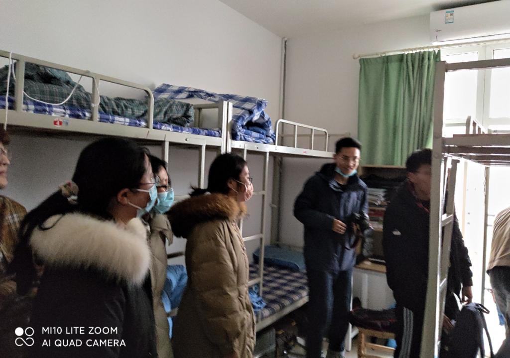 团委书记王元如、17级辅导员武莉华、20级辅导员耿晓敏、张文静、研究生辅导员徐莉一行前往学生宿舍看望返校的研究生、本科生各级同学,关心同学们返校期间的健康安全情况以及返校后的学习生活情况。