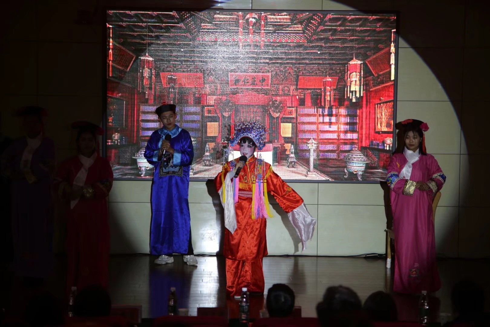 礼赞六五曲园,逐梦甲子政苑。晚会伊始,曲师义工部分成员带来舞蹈串烧《“义”起来,更精彩》,动感的舞步充满青春活力;弘道宣讲团成员以慷慨激昂的诗朗诵《我是青年》,展现当代中国青年的责任与担当;在小品《变形记》里,仪加仪社团带我们感受中华礼仪的魅力;接着,陈峻泽、原文杰用充满流行气息的原创说唱歌曲《曲园魂》致敬曲园、献礼青春;单传升、吴泽文带来相声《大学之道》,以诙谐幽默的方式徐徐展开一幅曲园学子别样的成长画卷;龙学岩、宋永瀚以及研究生沈琦合作表演歌舞剧《如果当时》,柔美的舞姿与动听的歌声融合,散发中华文化的魅力,为观众带来一场精彩绝伦的视听盛宴;在曲师义工令人捧腹的小品《选妃记》后,场外主持人与观众的热情互动并分发奖品,整体氛围活跃高涨。随后,研究生李珊、常洪泰带来男女对唱《风吹麦浪》,曲师义工文艺部表演萨克斯奏乐《名侦探柯南》和舞蹈《Hann》,乐曲动听,舞姿动感,现场掌声此起彼伏、连绵不绝,气氛到达一次次高潮;小品《那些年的支教岁月》传递温暖与感动;视点俱乐部一曲《夜空中最亮的星》舒缓悠扬,动人心扉,引发全场大合唱。最后,晚会在歌曲《我们都是追梦人》的优美旋律中缓缓落下帷幕。