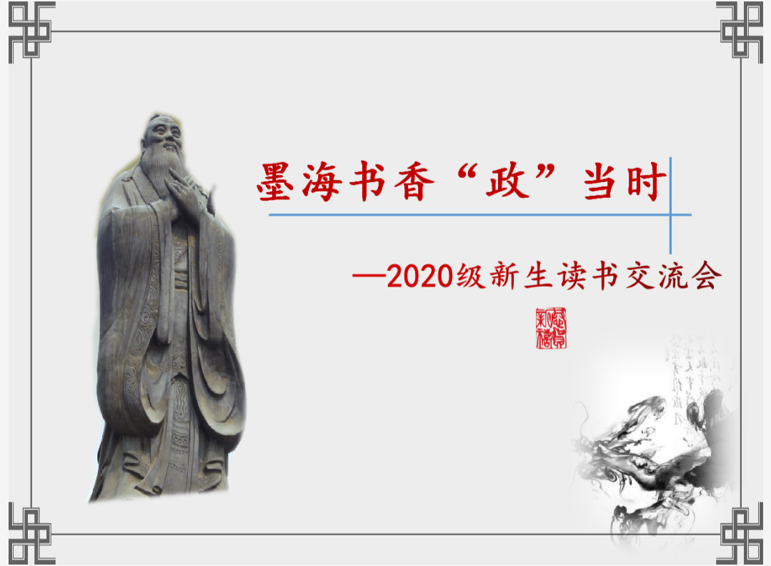 会议围绕“墨海书香‘政’当时”这一主题,分教师寄语、学长经验、新生答疑和院长总结四个不同模块进行。
