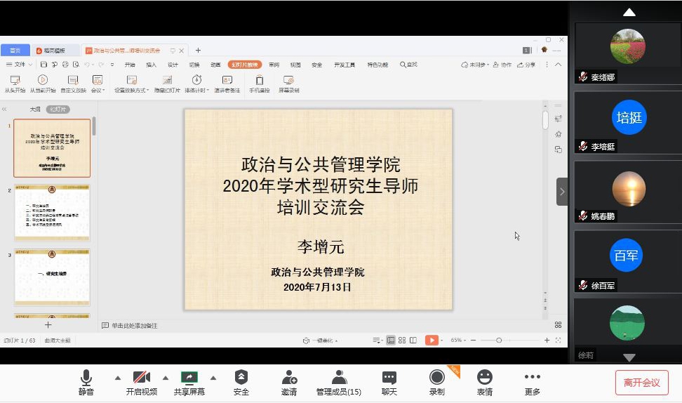 于7月13日和7月15日通过“腾讯会议”平台分别召开学术型研究生导师培训会和MPA研究生导师培训会。金沙娱乐