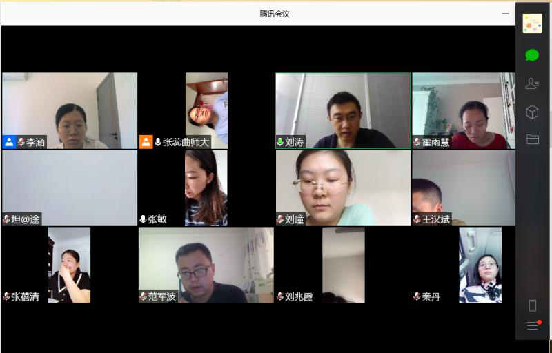 开题报告会主要利用腾讯会议、QQ群等工具,采取“老师集体指导+学生依次报告”模式进行。本次研究生开题报告会主要分为研究生陈述、指导老师提问、学生答辩三个环节。开题学生按顺序展示PPT,阐述论文选题、国内外研究综述、研究内容、研究方法等方面,指导老师对每个学生的开题报告的选题依据、结构层次、理论基础、研究思路、写作规范、创新点等方面提出建议,使同学们更清楚地认识到开题报告的不足之处。最后,指导老师集体讨论,作出开题通过或不通过结论。