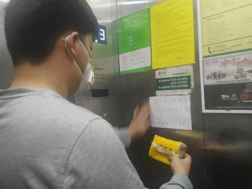 2017级学生党员王星普为社区所有高层单元楼中放置了一次性电梯按键保护专用纸,并提醒住户注意防范疫情,在家勤洗手。王星普表示,我们要认识到此次疫情的严重性,做到尽量不外出、不聚会、不造谣、不信谣、不传谣,出门戴口罩,积极实行自主消毒措施;同时也不要过分恐慌,听从当地政府安排,不为国家添麻烦。共抗疫情,人人有责。