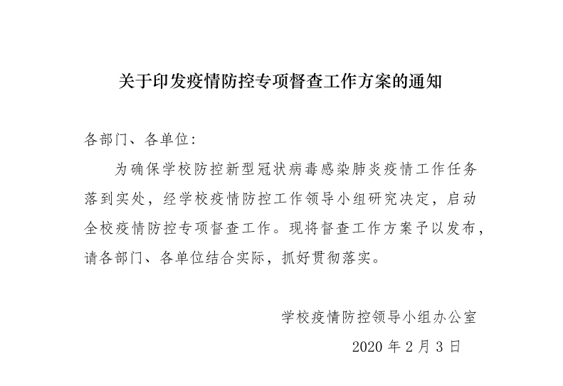 众志成城,战胜疫情通知系列之十一:关于印发疫情防控专项督查工作方案的通知