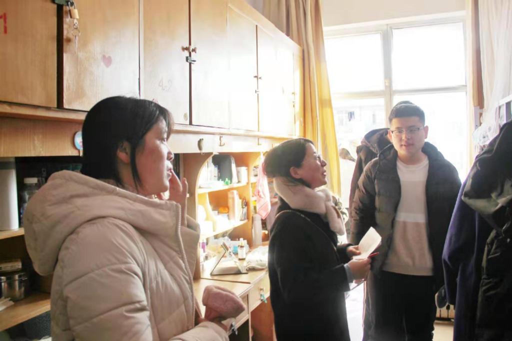 研究生宿舍整体情况良好,宿舍整洁,物品摆放有序,但也有个别宿舍物品摆放杂乱,存在卫生死角,宿舍内通风不佳等现象。针对宿舍安全卫生问题,葛老师和徐老师特别叮嘱大家要提高安全防范意识,注意冬季用电安全,不要使用大功率违规电器,出门时要做到人走断电,宿舍要勤打扫、多通风,养成良好的卫生习惯。
